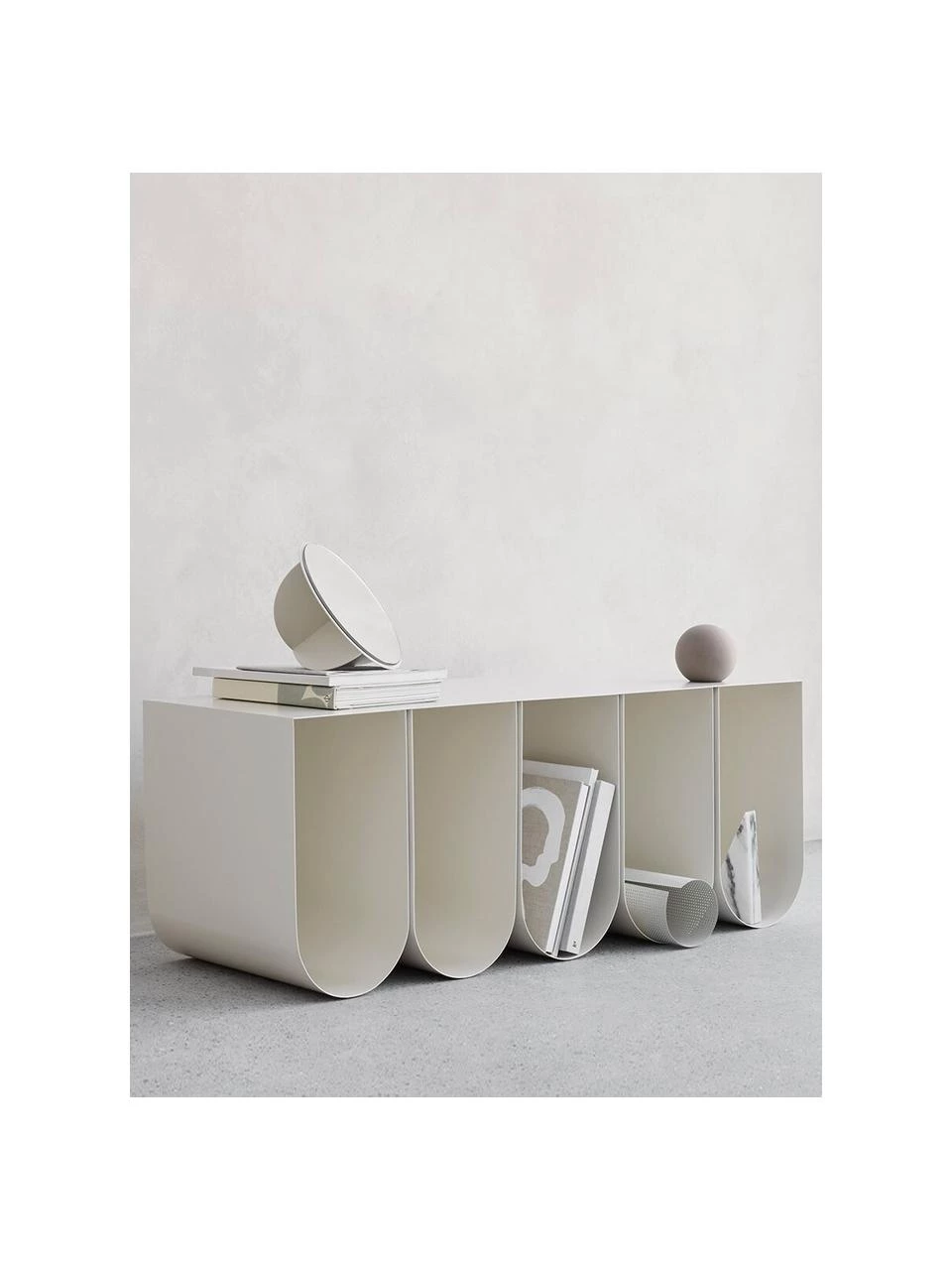 – Metall-Sitzbank mit 5 offenen Fächern