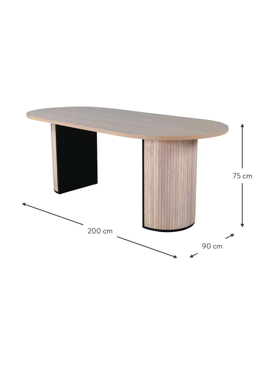 Die zwei breiten Tischbeine mit geriffelter Front machen den Tisch zu einem stylischen Hingucker.