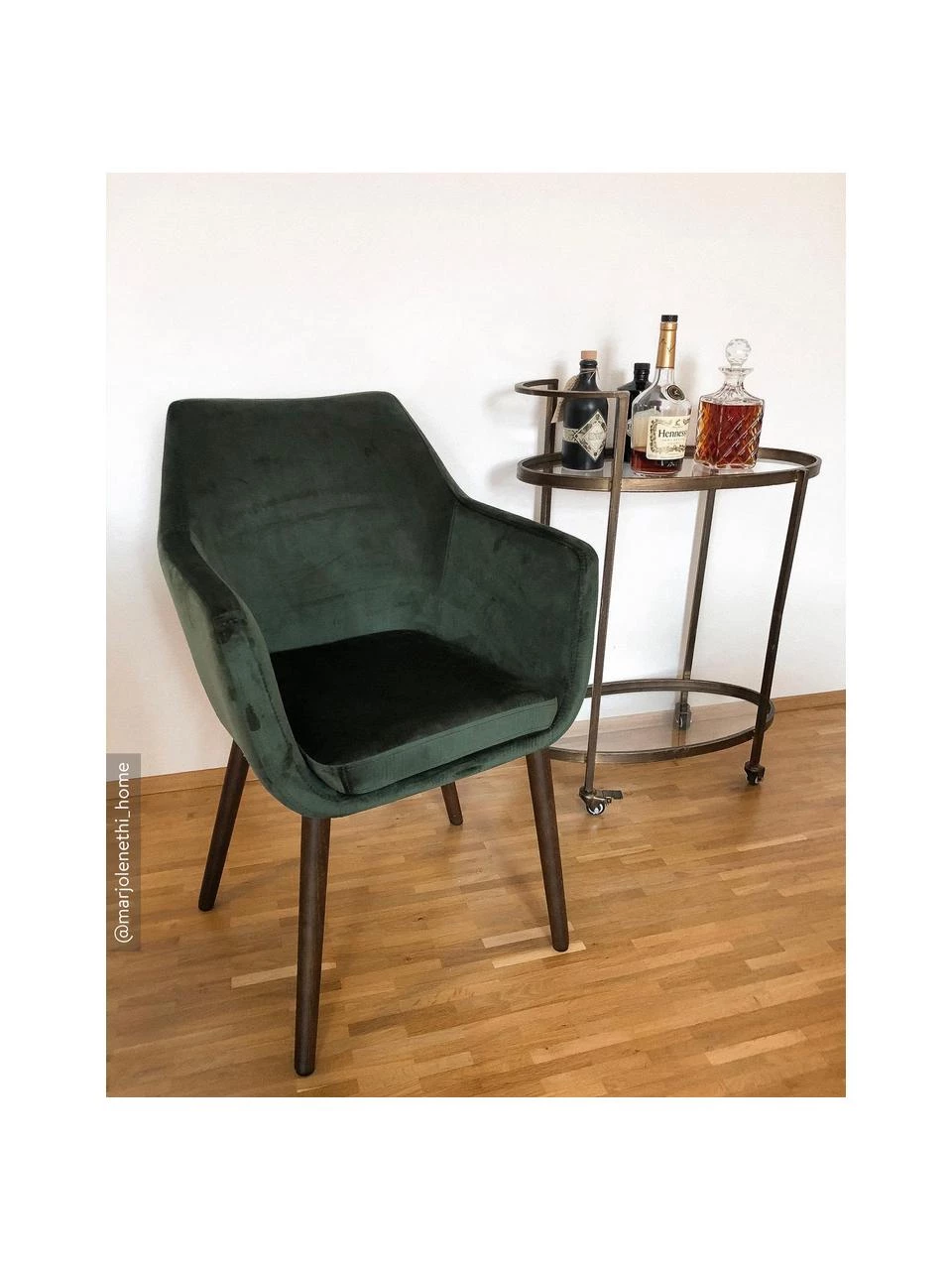 Schmaler Samt-Armlehnstuhl mit kleiner Sitzfläche