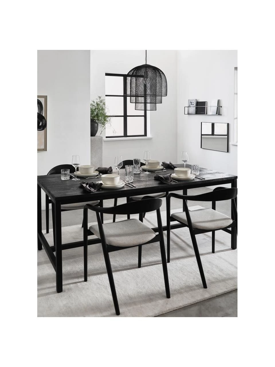 Tischplatte: Massives Mangoholz, gebürstet, schwarz lackiert