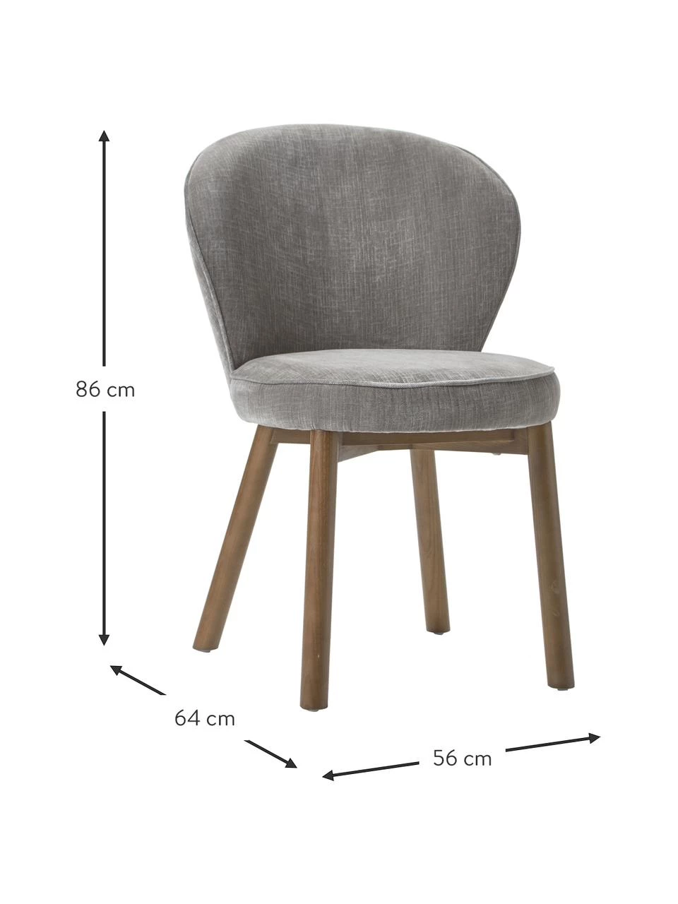 Westwing Collection Polsterstuhl Serena in Grau, B 56 x T 64 cm