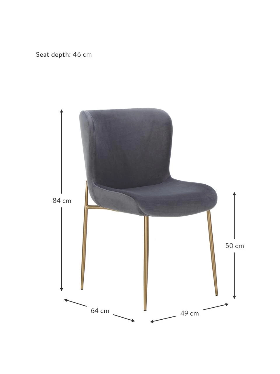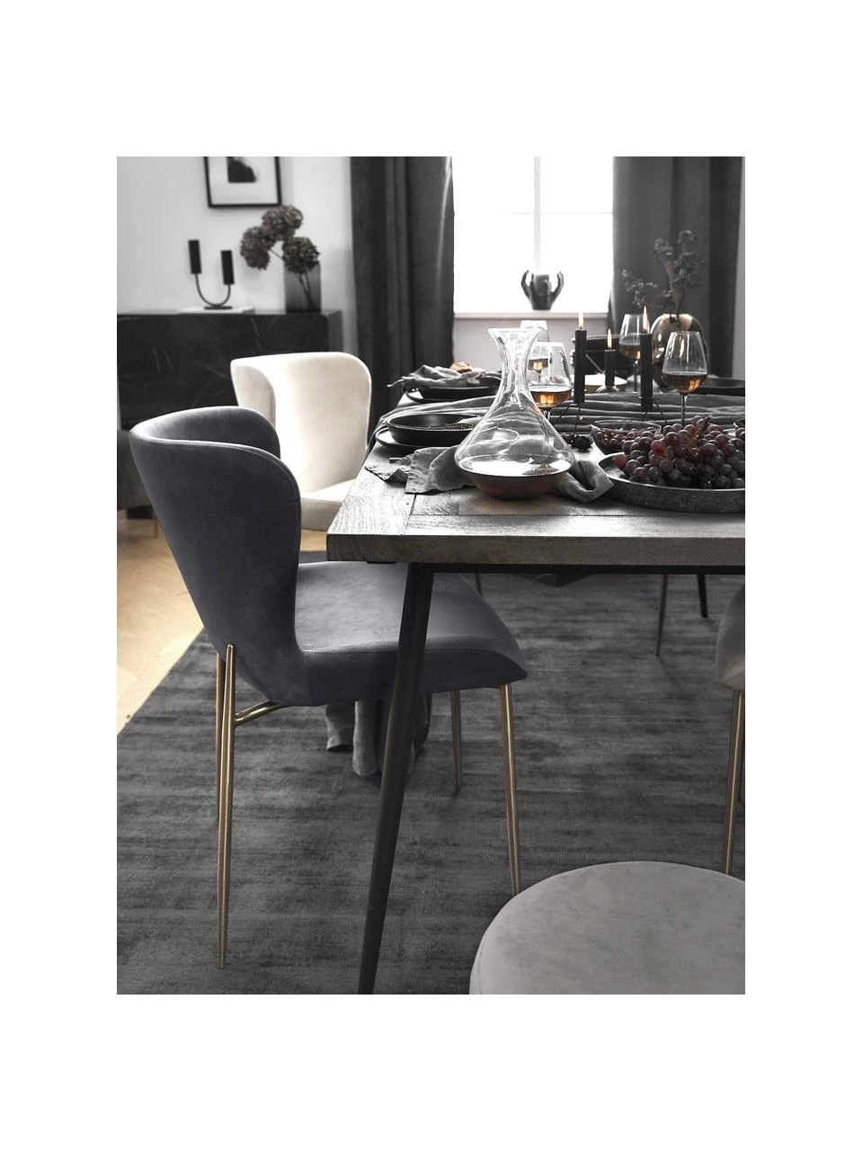 Westwing Collection Samt-Polsterstuhl Tess in Dunkelgrau, B 49 x T 64 cm